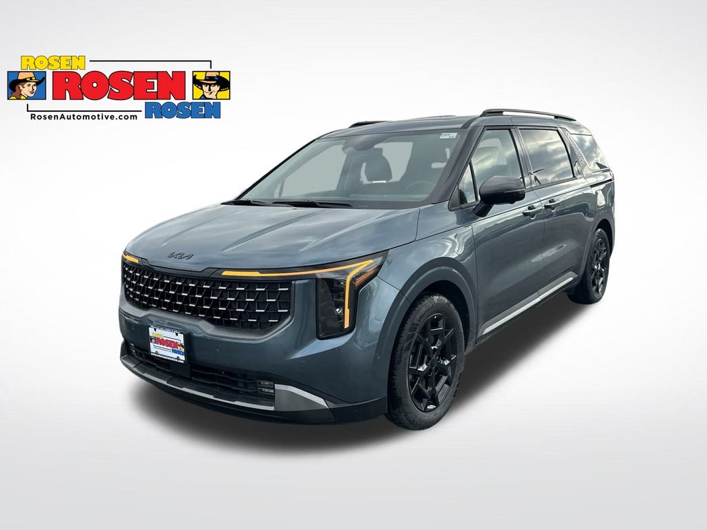 1.6L I4 DGI Hybrid Turbocharged DOHC 16V LEV3-SULEV30, ABS brakes, All Weather Floor Mats (8-Passenger), AM/FM radio: SiriusXM, Apple CarPlay & Android Auto, Artificial Leather Seat Trim, Auto-Dimming Mirror with HomeLink, Automatic temperature control, Cargo Net, Dark Edition Interior Design, Electronic Stability Control, Exterior Parking Camera Rear, Front dual zone A/C, Fully automatic headlights, Heated door mirrors, Heated front seats, Power door mirrors, Power driver seat, Power Liftgate, Power steering, Power windows, Rear air conditioning, Rear window wiper, Remote keyless entry, Speed control, Split folding rear seat, Steering wheel mounted audio controls, SX Dark Edition Package, Telescoping steering wheel, Tilt steering wheel, Traction control, Trip computer, Variably intermittent wipers, Wheels: 19" Black D-Cut Customizing. 34/31 City/Highway MPG 2026 Kia Carnival Hybrid SX